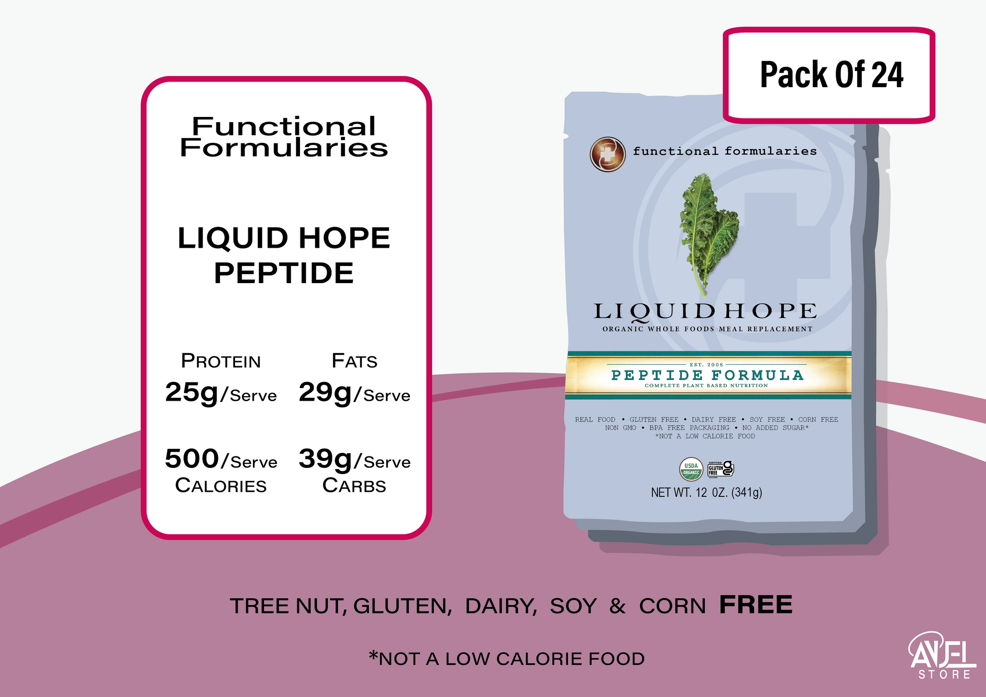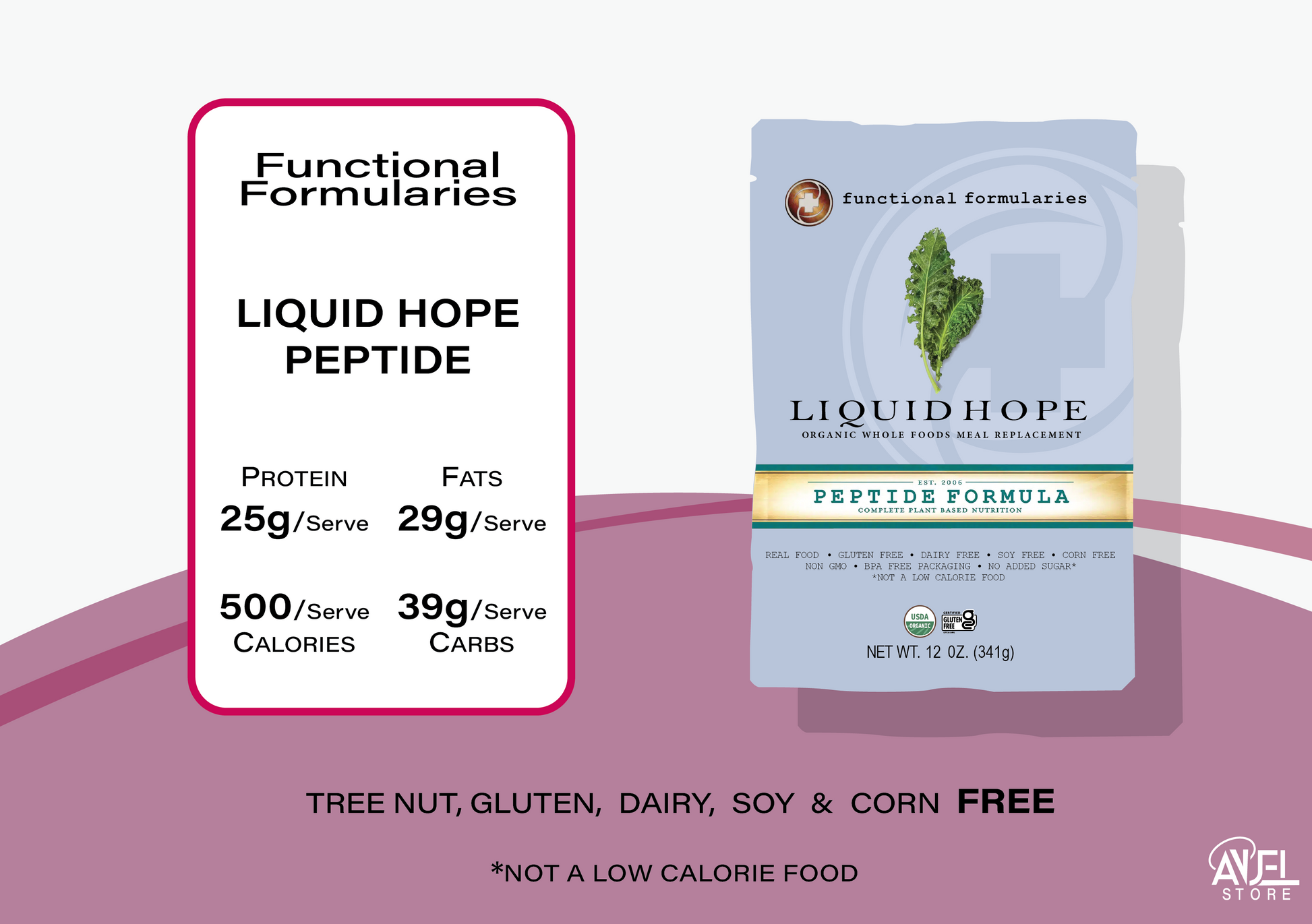 Liquid Hope Peptide High Protein contains 31 of protein to help support lean muscle mass and strong bones; Mounting evidence shows that RDA of 0.8g/kg ( 53g/day)** of protein is inadequate for older adults. Formulated for adults to provide complete nutrition. Support muscles. Protect bones. Nourish the body.
